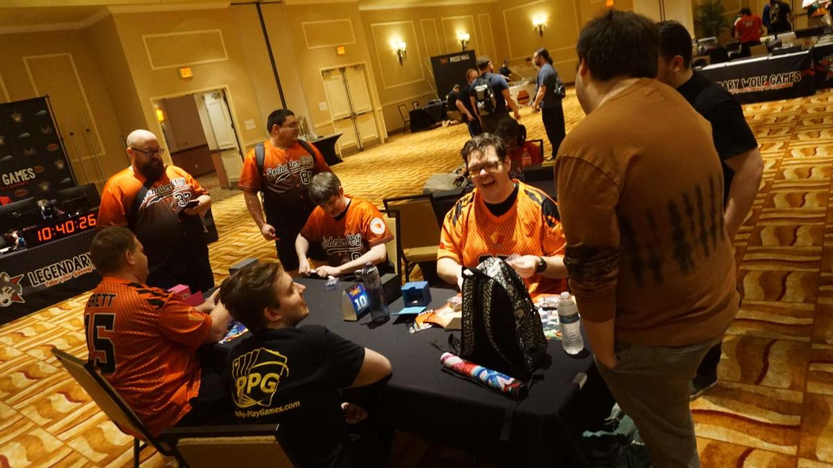 Now everyone in the Universus community knows, you can’t talk about Legendary Wolf without talking about the people that make things go. Of course, the Wolf himself Myles Tyler did an incredible job as the MC, TO, Game Show host, and Robin Hood making sure the people got the wealth. But let’s not forget the team. Mason and company had a FANTASTIC setup for their store and taught me a thing or two about the world of Universus that I didn’t even know about. I was even more impressed with Danielle’s and Sara’s setup for the streams and how they kept everything running. I’m a computer hardware junkie and they had a setup so clean, I felt like I was in Willie Wonka’s Chocolate Factory. Hats off to all of you for setting all that up and taking it all down, because I know it was more than a snap.