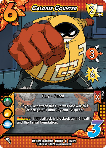 Holding true power in the palm of your hand is a feeling few heroes will ever experience. Even fewer will hold it all in their… checks notes… FAT! Fat Gum makes his Universus debut and everyone has been BUZZING about this reveal ever since. He’s the first Character to have a different mode that he switches to in the late game, showing the range of the card building team to adapt to new character lore. His first mode has great access to cards with a built in Wild, Wild, Pussycats on his face, so you can see the best cards consistently and build them for free. I think his meta-relevence could be a concern with his ability to switch to mode 2, being left to a bit of chance. After all, if he sees a Character in his top 4 from using his Enhance, he chucks it to the Discard Pile. So, you’ll probably need to main ways to get those back. Still, a strong character on solid symbols that can turn a game where he’s behind into a decisive victory!
