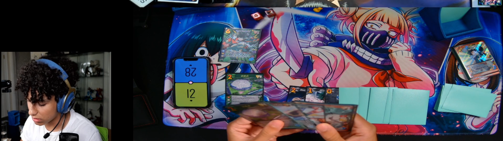 Nil quickly confirmed the infraction with both players and the VOD of TJ’s stream… But, then she went the extra mile. With a little help from the players, she found a point in the stream (shown below) when TJ tipped his hand to the camera. While this is usually a common mistake in webcam play, it would prove to be his salvation. The tipped hand clearly shows the Heroic Strike that ended the game was sitting in hand the whole time, well before the infraction. After awarding a time extension, the match was allowed to proceed to Game 2 unchanged.