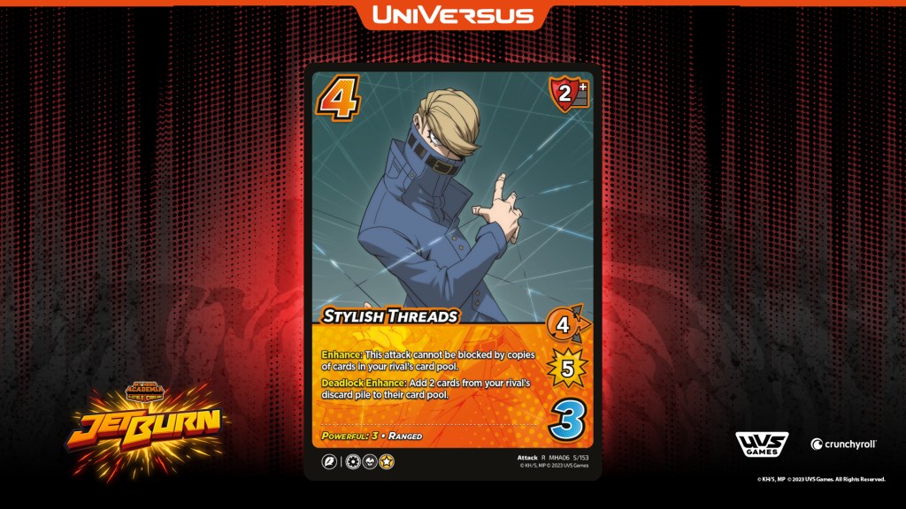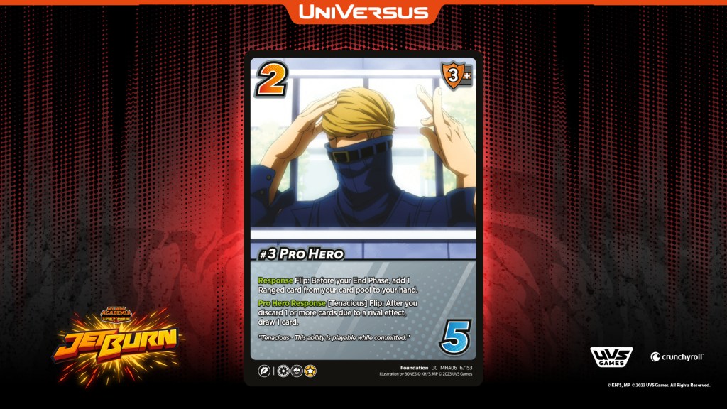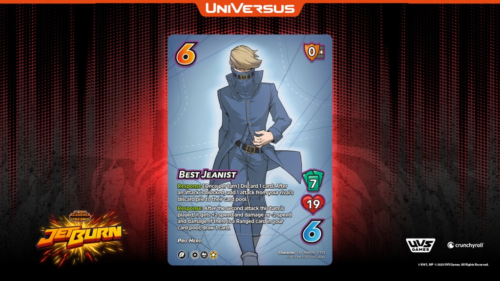 Hey guys. I just want to take a second to thank UVSGames for kicking off the Jet Burn Reveal Season RIGHT HERE with My Hero Meta! I’m so honored and it’s so cool to think about. I know everyone will be hunting for the images for Jeanist himself, so I’ll make it easy for you. They’re right here.