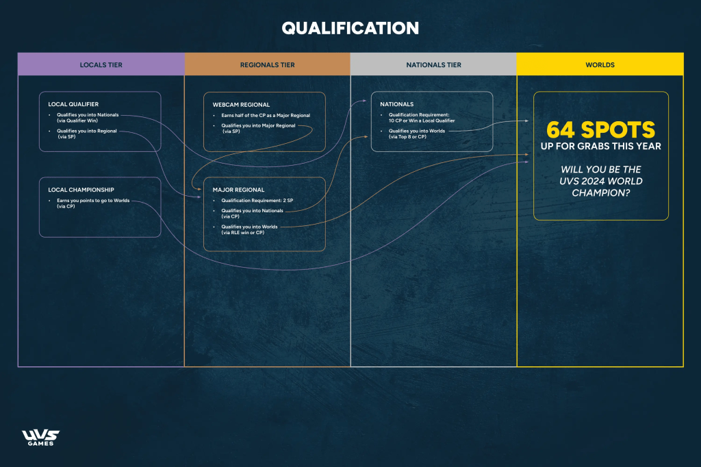 If you’re counting, them you’ve noticed that we’ve awarded 33 spots to UVS’s largest stage so far. (9 Major Regional Winners and 24 Nationals Top 8 finishers) As I eluded to before, you will be able to earn an invite from Championship Points. If you finish in the Top 5 in CP in your region, you will punch your ticket to Worlds 2024. These invites will trickle if a player has already earned their invite elsewhere. After those 15 players have been selected, the next 15 players with the most CP globally will also earn an invite to Worlds.