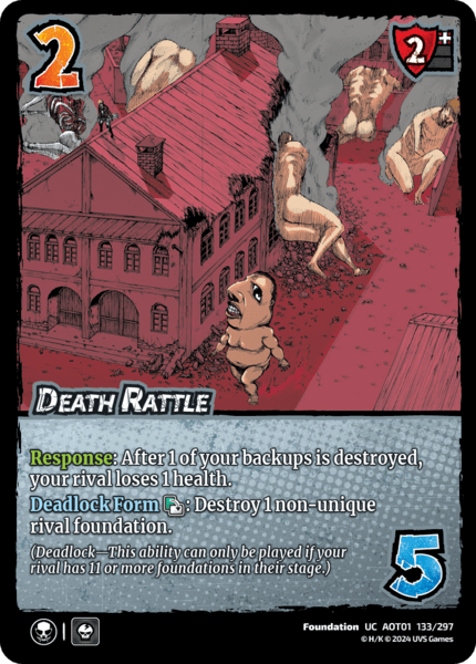 Yes! Symbol identity means a lot more when Timmy doesn’t have to search for the icons in the corner. Death cards are Red, Life cards are green, etc. This won’t be the case forever, but the Black and White art style of Attack On Titan’s manga offered the Creative team an interesting opportunity to choose the way they would use color to convey information. Like it? Hate it? Lmk in the comments.