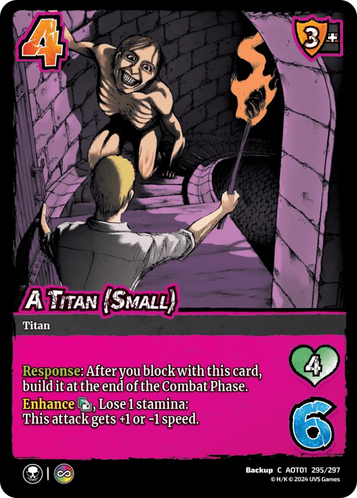 Backups are a way to give characters an interactive element, without having to give them a character. Who wants to play A Small Titan as their character? … Yea, I know. BUT who wants to have a small army of Titans lurking around the battlefield, adding an element of scarcity of resources (counting your stamina), and powerful yet playable cards. Adding interaction to the game seems like an awesome way to add fun and memorable moments to the game.