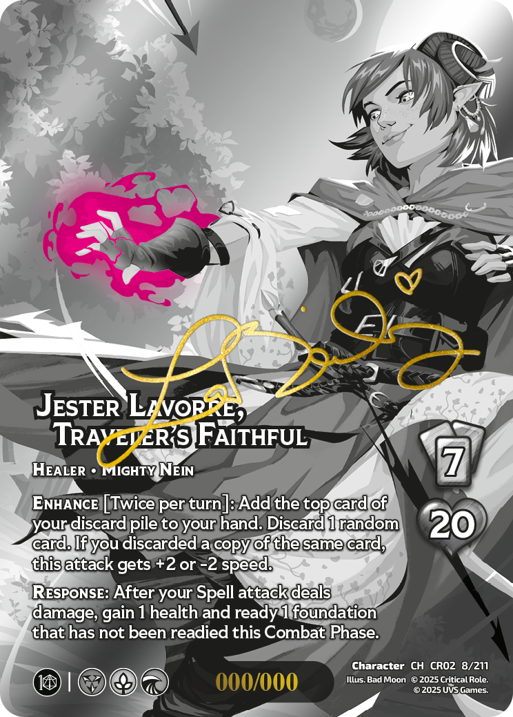 When I was at Nats this year, I had a great conversation with Illustration Art Director, Hitch, about the evolution of the art we see. In each release, there’s always a new twist on something, whether it be the stat icons getting IP-specific styles, or the Obsidians in Origins of Power getting true alternate arts. So, what’s new with the Chromes in Heroes of Exandria? Well I’ve been saying for months that this set marks the return of color to our game, so let’s pop a sweet bead of the brilliant stuff right on our flagship cards.